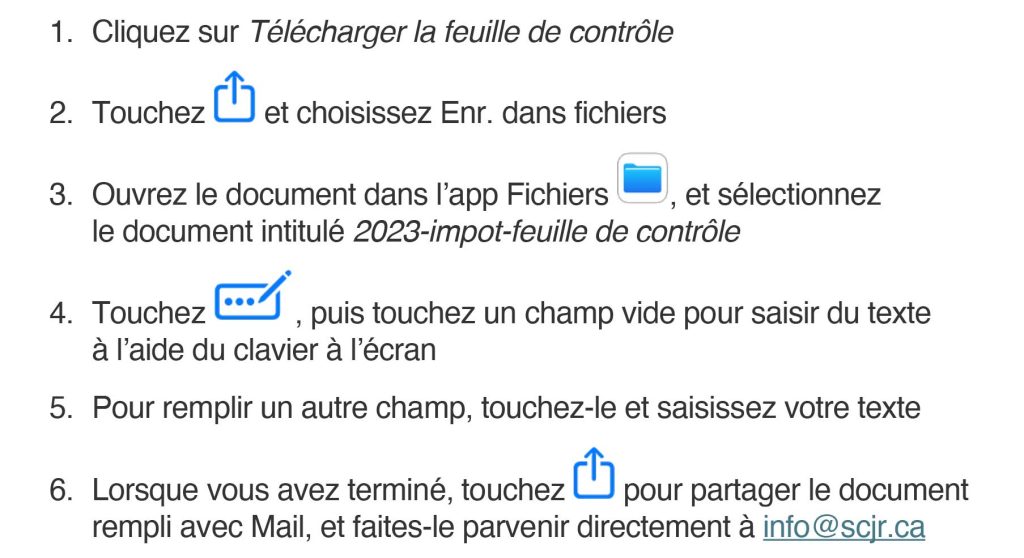 • n’oubliez pas de joindre la feuille de contrôle dûment remplie
